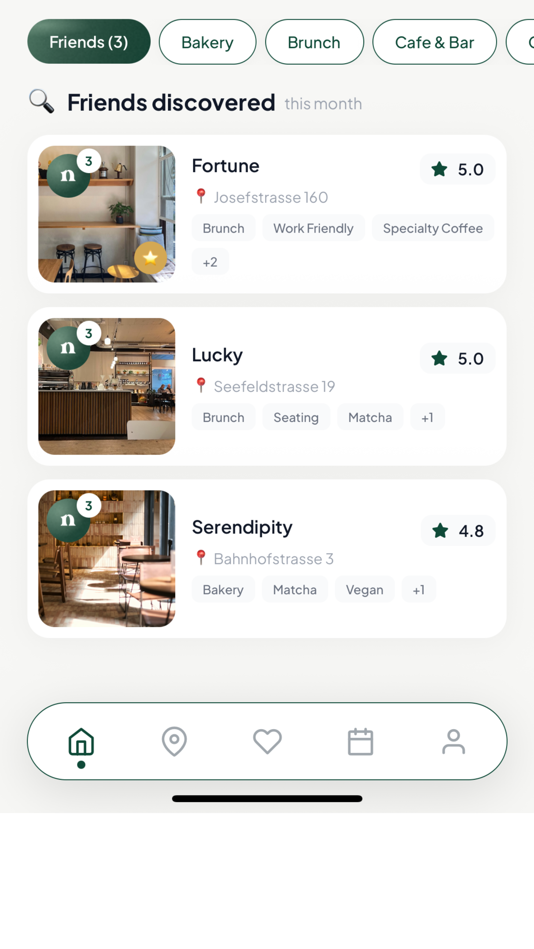 Browse the map to find partner cafés near you — or anywhere you're travelling. Filter by what's open, trending, or loved by friends.